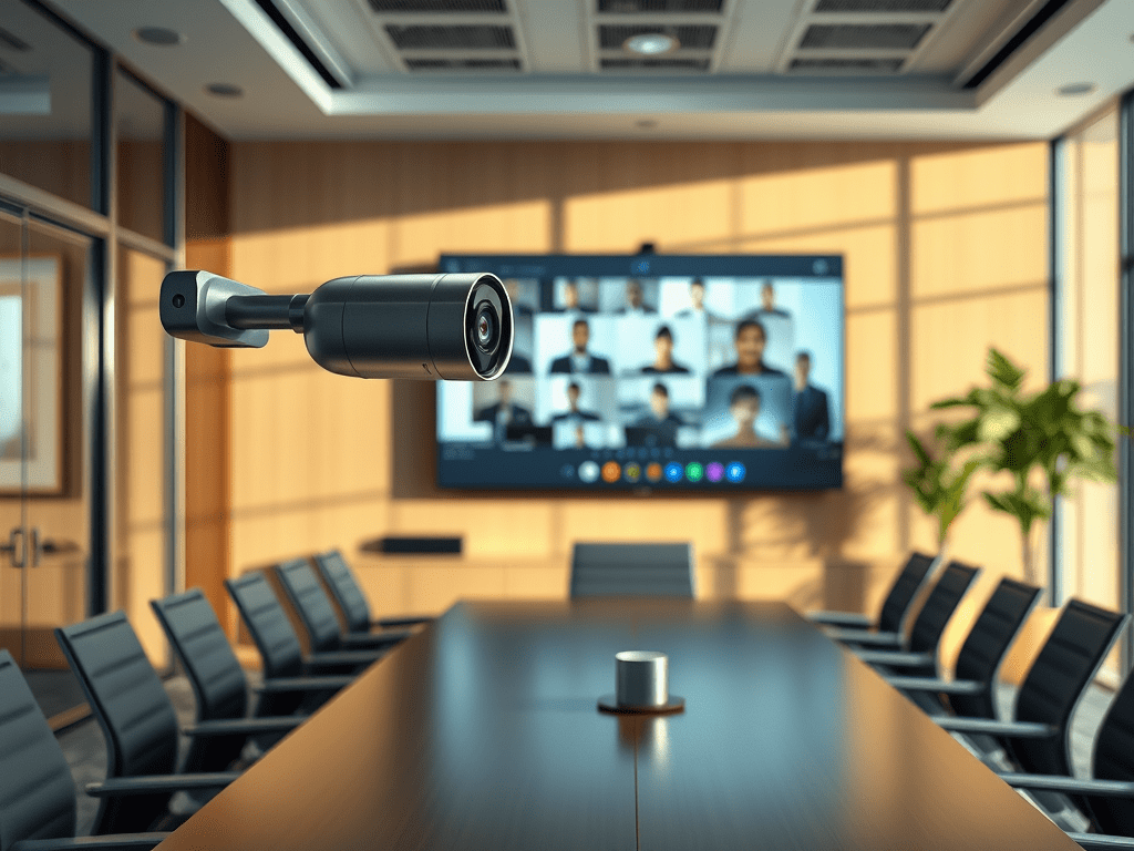 Create a featured image highlighting the Veggi Eg audio interface, showcasing its sleek design and compact structure. The background should reflect a modern office setting, emphasizing its importance for video conferencing and audio recording. Use soft, natural light to enhance the interface’s features and ensure a clean, professional look. The image should be highly detailed with sharp focus, capturing the nuances of both the interface and the workspace environment. Please produce the image in high resolution for optimal clarity.